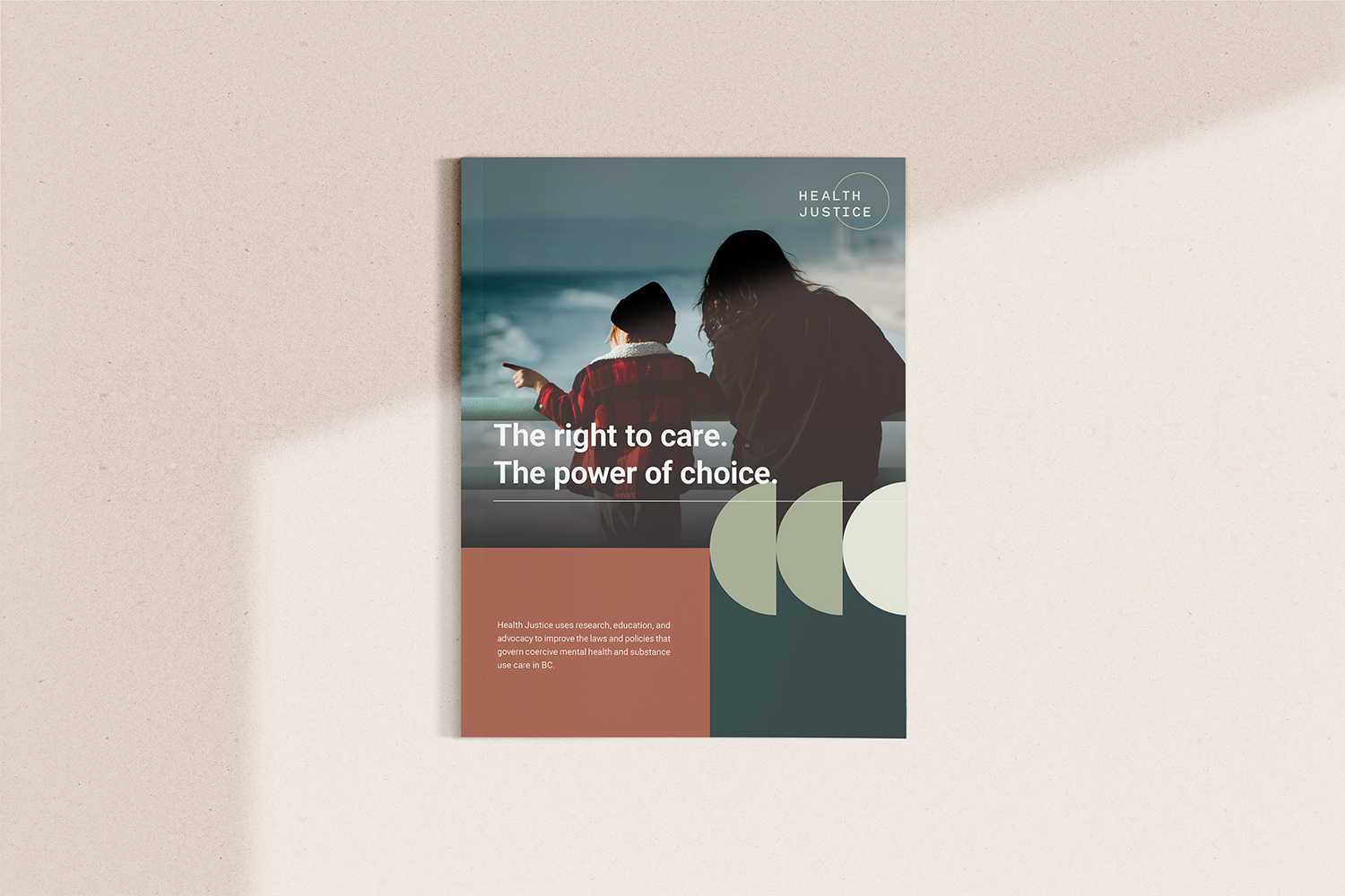 Health Justice is a non-profit, charitable organization working to improve the laws and policies governing coercive health care in BC through research, education, and advocacy. We worked with them to create their brand identity, tagline, brand assets, launch graphics, print collateral, and report layout.